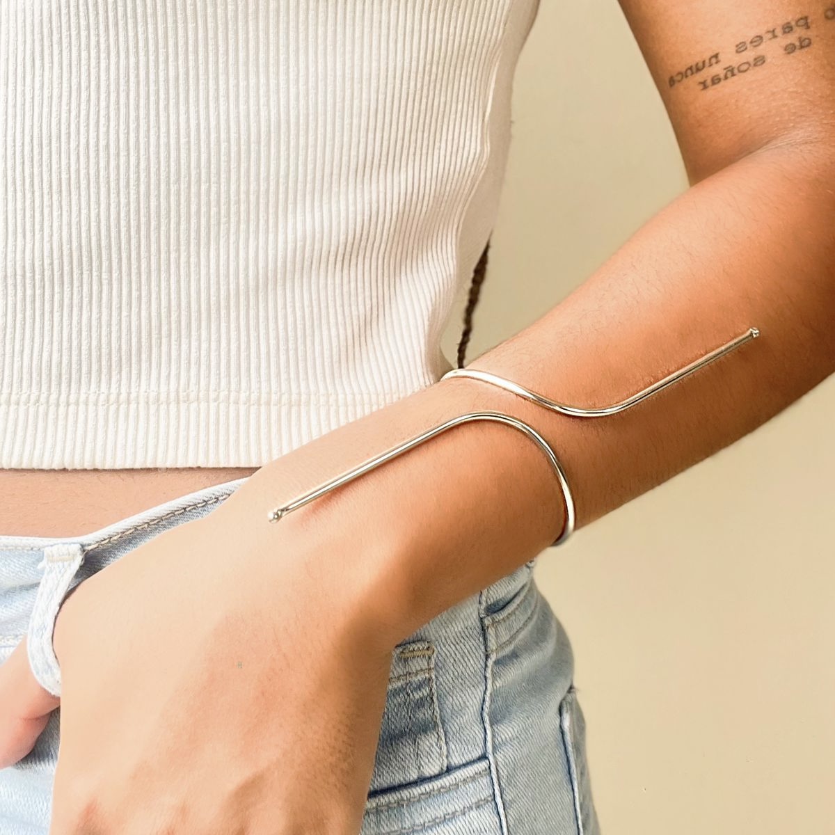 Este deslumbrante bracelete em um aro liso com banho de ouro 18k de alta qualidade, tem um design sofisticado e elegante. Uma verdadeira declaração de estilo que irá adicionar um toque de personalidade e modernidade ao seu visual.