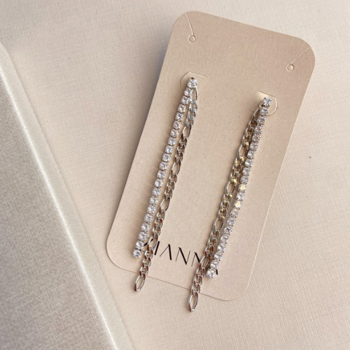 Este brinco delicado e sofisticado apresenta um design moderno e elegante, perfeito para adicionar um toque de glamour ao seu visual. Confeccionado com um banho de ródio branco, o brinco possui um fio de zircônia e um fio de corrente.