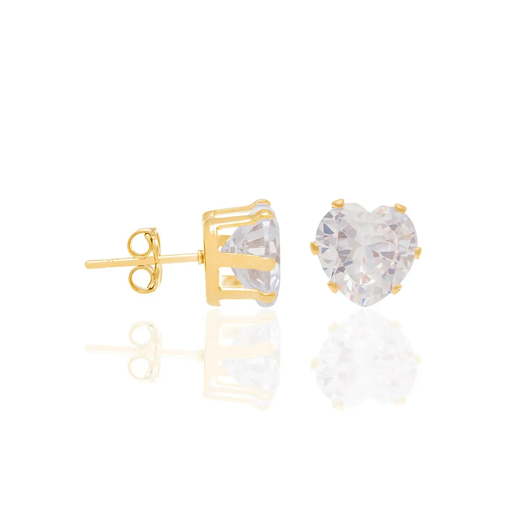 O brinco coração solitário conta com a elegância clássica e o brilho sofisticado de uma peça atemporal, adornada com um luxuoso banho de ouro 18k, o design romântico é perfeito para adicionar um toque de glamour a qualquer look.