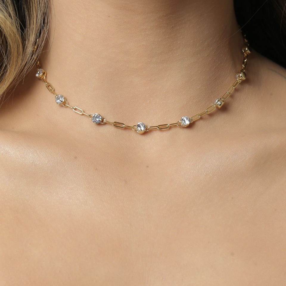 Eleve o seu estilo com este deslumbrante colar, uma adição encantadora à sua coleção de joias. Cada peça é cuidadosamente confeccionada com 14 zircônias, criando um visual elegante e sofisticado.
