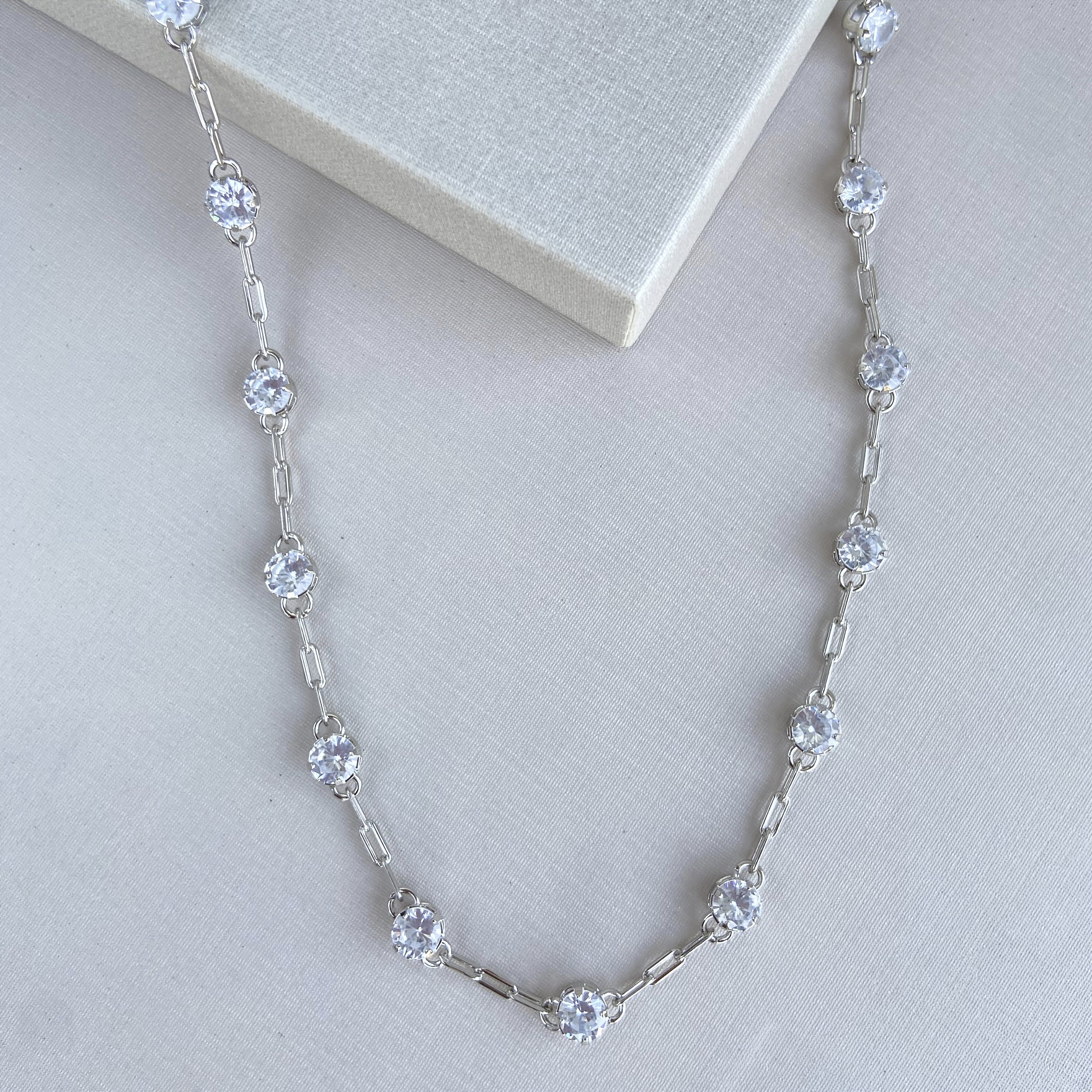 Eleve o seu estilo com este deslumbrante colar, uma adição encantadora à sua coleção de joias. Cada peça é cuidadosamente confeccionada com 14 zircônias, criando um visual elegante e sofisticado.