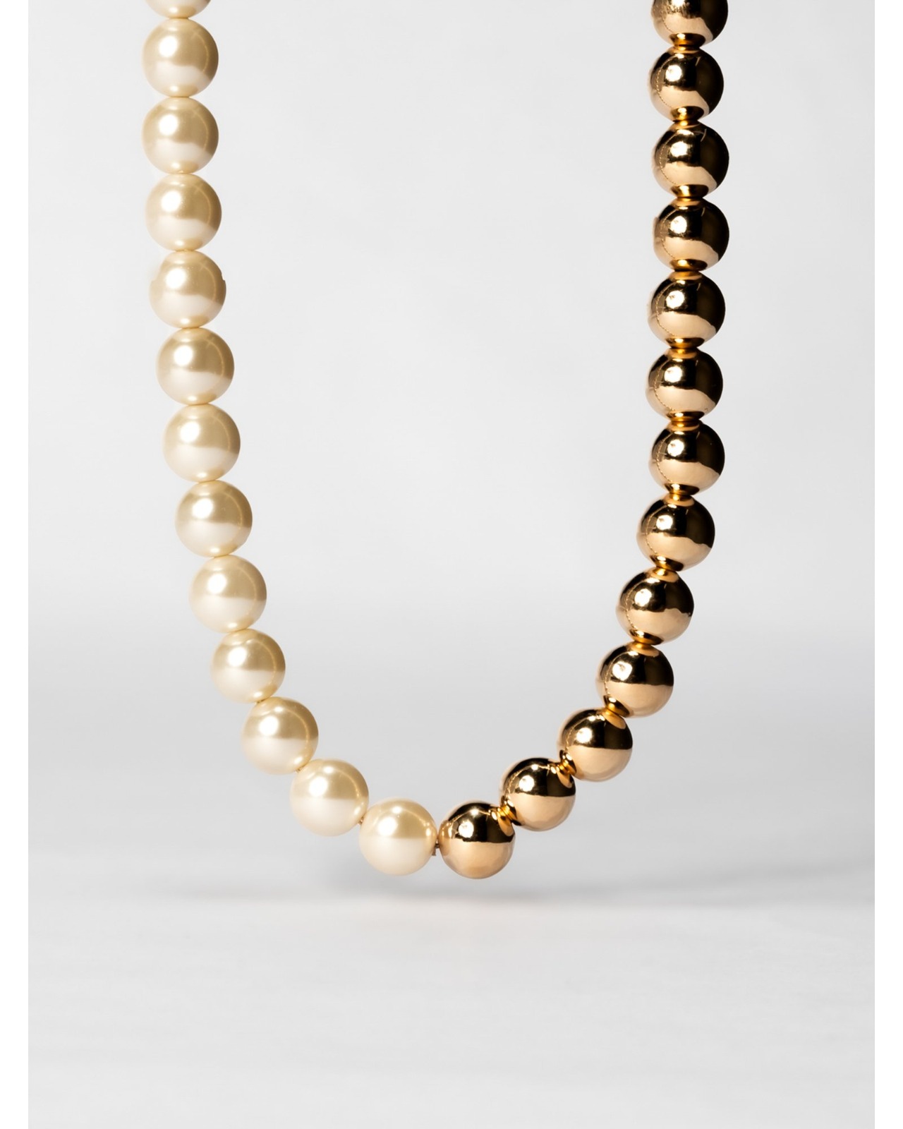 Encante-se com a beleza atemporal e clássica deste colar, onde a delicadeza das pérolas se une à elegância das esferas banhada em ouro 18K. A corrente banhada em ouro 18K proporciona um brilho luxuoso e duradouro, elevando ainda mais a beleza das pérolas. Este colar é uma escolha perfeita para aquelas que desejam adicionar um toque de elegância e refinamento ao seu visual, seja para ocasiões especiais ou para o dia a dia.