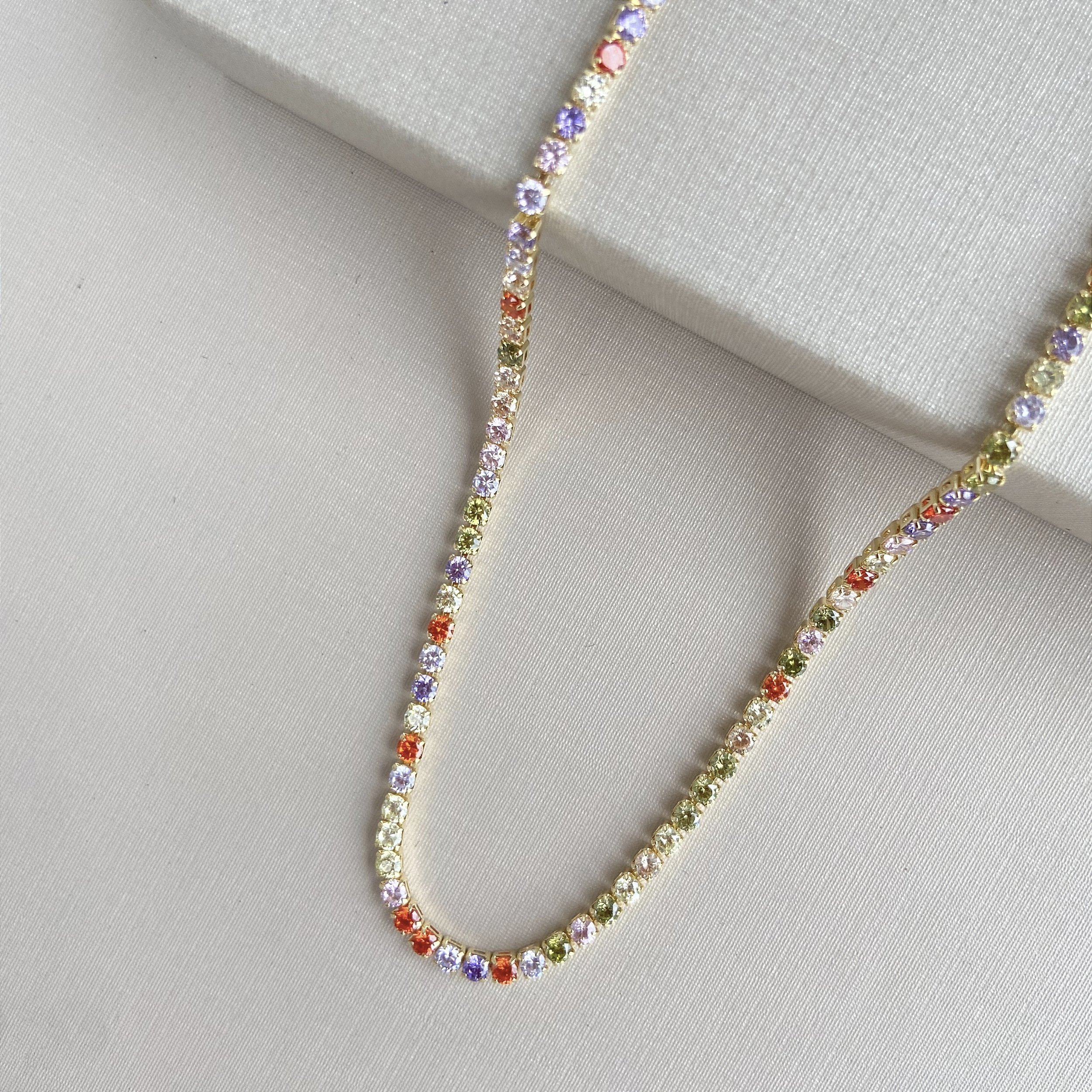 Feito com matéria prima de alta qualidade, este colar combina durabilidade com beleza, garantindo uma adição deslumbrante à sua coleção de joias. O design clássico das 4 garras segurando delicadamente as pedras de 3