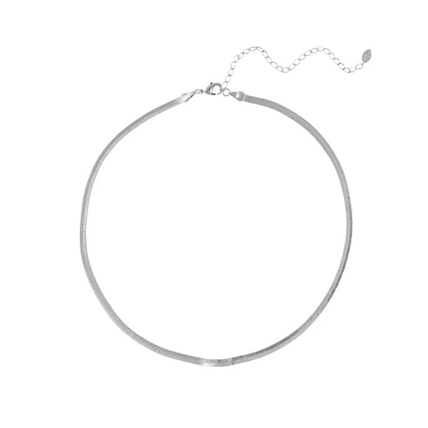 Colar slim com banho de ródio confere um brilho luxuoso e duradouro. Esta peça é uma verdadeira declaração de moda, perfeita para adicionar um toque de sofisticação e mistério ao seu visual.