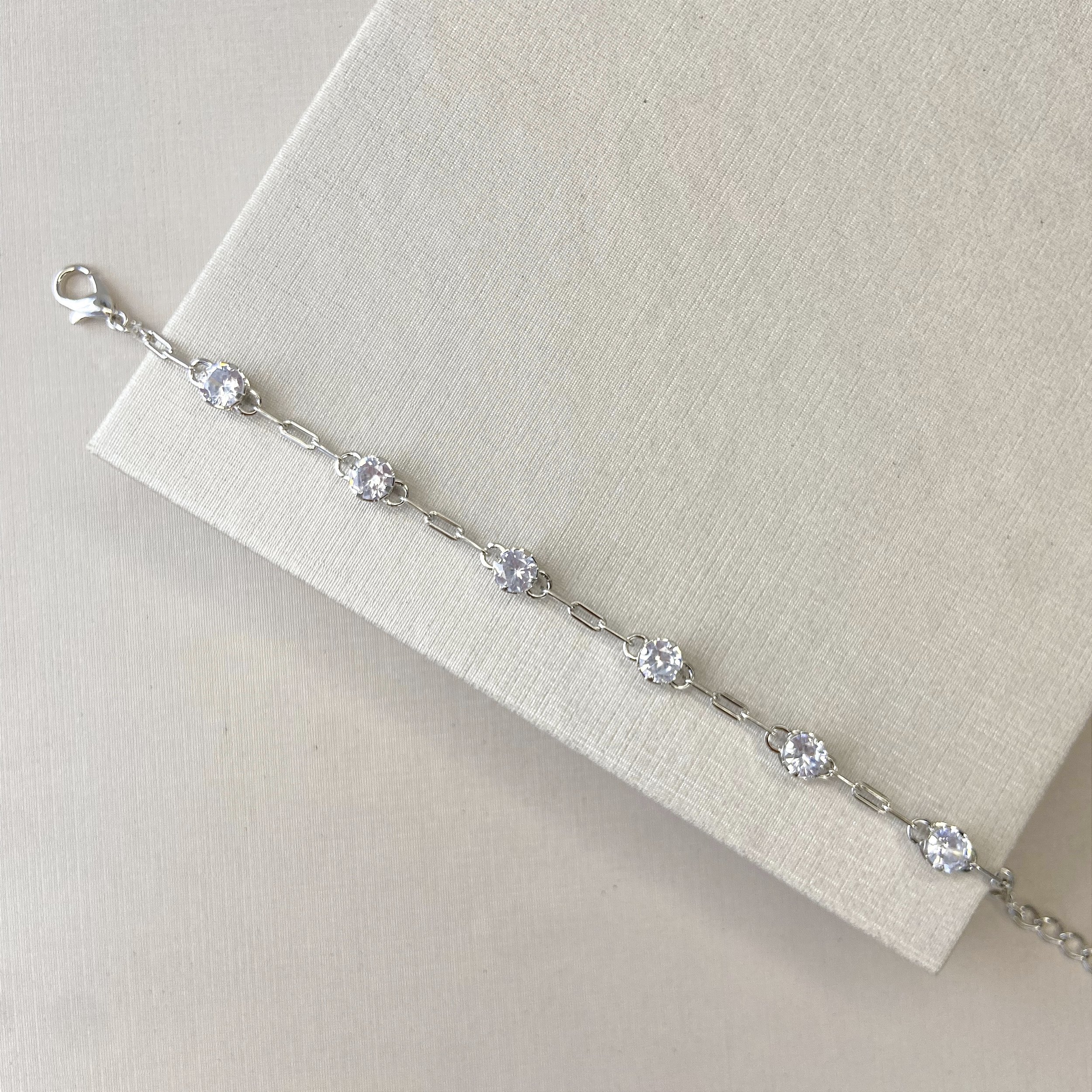 Eleve o seu estilo com esta deslumbrante pulseira, uma adição encantadora à sua coleção de joias. Cada peça é cuidadosamente confeccionada com 6 zircônias, criando um visual elegante e sofisticado.